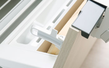 キャビネットを勢いよく閉めても、閉まる前に減速し、滑らかに閉まります。