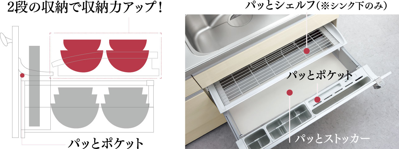 キッチンワークをやさしくサポートする新感覚キッチン収納。