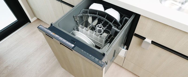コースを選びボタンを押すだけで、きれいに食器が洗え、乾燥までできる食器洗い乾燥機。手洗いに比べ、節水にも貢献します。