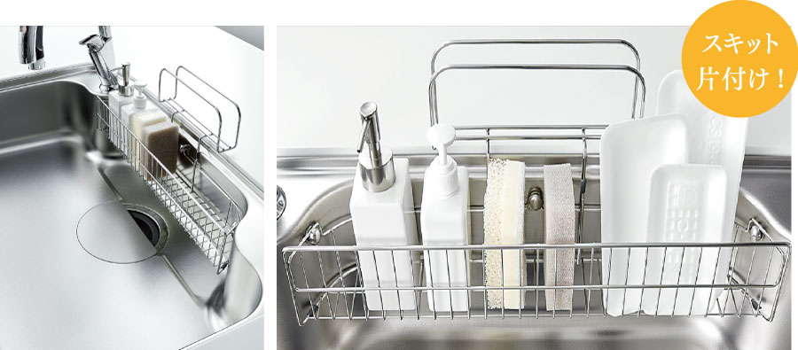汚れがスムーズに流れる底面形状とゆとりのポケットサイズで、2つの「スキット!」を実現しました。
