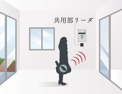 ラクセスキーをバッグやポケットから取り出すことなく、センサーが感知。ハンズフリーでオートロックを解錠し、オートドアを通過できます。