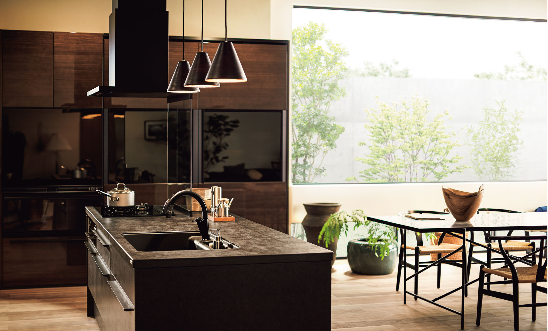 熱やキズ、汚れに、優れた耐久性を発揮するセラミック。その美しさを長く保てる理想的なワークトップ素材です。