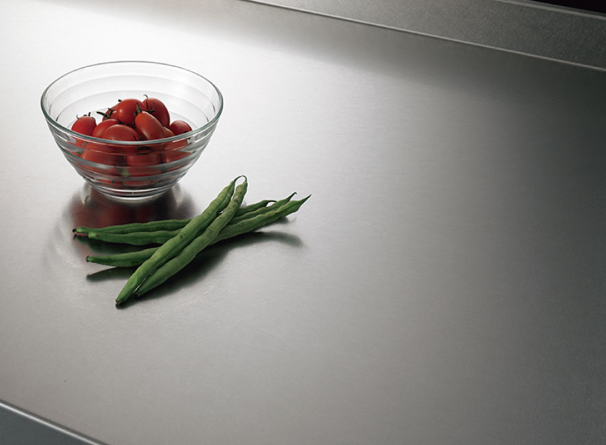 表面を研磨して微妙なスクラッチを施したバイブレーション仕上げ。シルクのように柔らかな光沢と温かみを感じさせるエレガントなデザインのトップです。