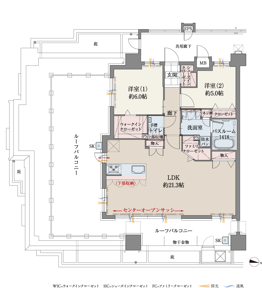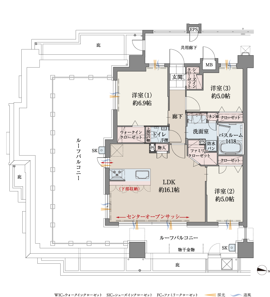 • 最上階、ルーフバルコニー付の三面採光プランです。